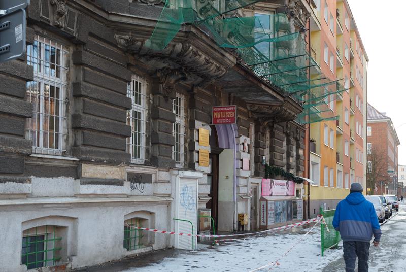 Sytuację nagłośnił jeden z rodziców maluchów uczęszczających do placówki przy ulicy Potulickiej 62. Stan elewacji na zabytkowej kamienicy jest opłakany - przy każdej większej wichurze sypie się tynk i fragmenty cegieł. Widać opadające kawałki tynku. Główne wejście zabezpieczone jest siatką. Kamienica ewidentnie potrzebuje szybkiej rewitalizacji.