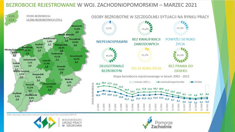 8,6 procent - tyle wyniosła stopa bezrobocia rejestrowanego w województwie zachodniopomorskim w marcu. To spadek - w stosunku do lutego - o 0,2 punktu procentowego. W kraju wskaźnik bezrobocia zatrzymał się na poziomie 6,8 procent. W samym Szczecinie bez etatów pozostaje 4,1 procent mieszkańców. Szczególny problem ze znalezieniem stałego zatrudnienia mają osoby po 50. roku życia oraz ci, którzy dopiero opuszczają mury szkół ponadpodstawowych i uczelni, najczęściej humaniści.