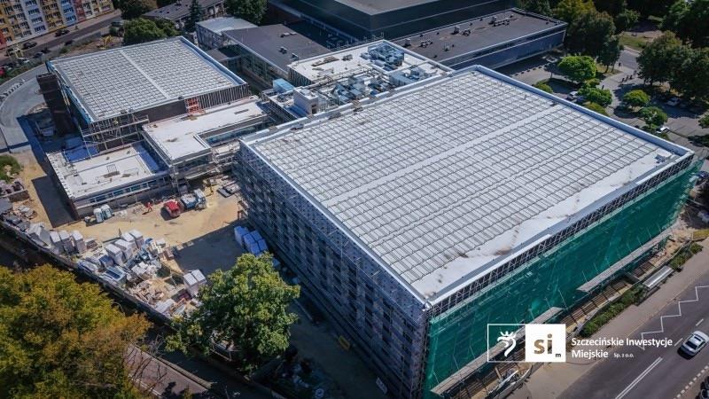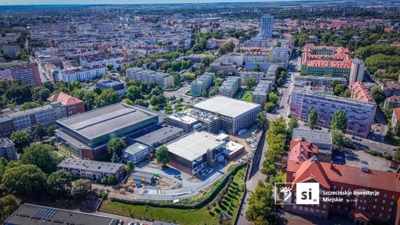 - Spacer po placu budowy to dziś podróż przez różne etapy prac - od surowych konstrukcji, po niemal gotowe przestrzenie. W hali widowiskowo-sportowej prace skupiają się na elewacjach, które łączą nowoczesne płyty włókno-cementowe z cegłą klinkierową - informuje Piotr Zieliński ze spółki Szczecińskie Inwestycje Miejskie. - Na swoich miejscach pojawiają się także aluminiowo-szklane fasady i okna, które w przyszłości doświetlą wnętrza i nadadzą im nowoczesnego charakteru. Ściany są tynkowane, szpachlowane i malowane, a podłogi stopniowo pokrywają nowe płytki. Równolegle montowane są sufity podwieszane i okładziny izolacyjne na klatkach schodowych. Krok po kroku hala zyskuje ostateczny kształt. Widać już zarys przyszłych przestrzeni dla sportowców i widzów.