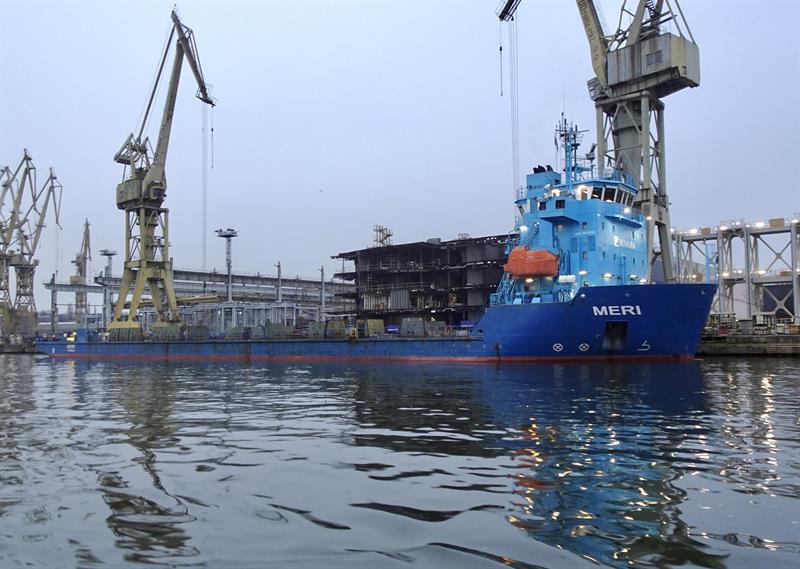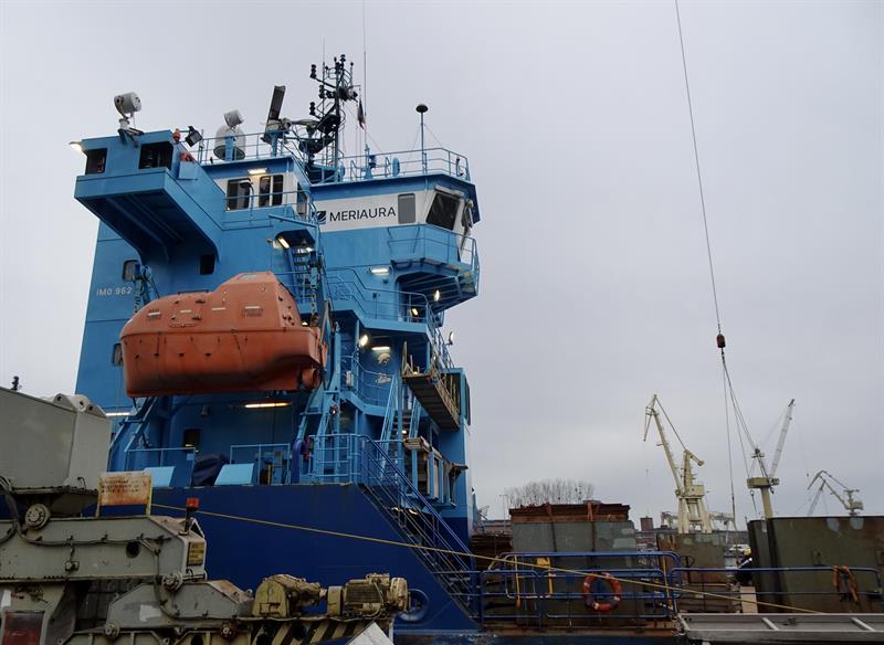 Po konstrukcje przypłynął w miniony poniedziałek specjalny statek (tzw ciężarowiec) - „Meri" - i zacumował przy nabrzeżu Drzetowskim. Następnie trwały przygotowania do załadunku