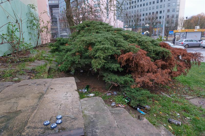 Sterta butelek po alkoholu i odchody - o takim widoku pod krzakami w centrum miasta, w bliskości placu Rodła, pisaliśmy kilka dni temu. I był to sygnał od naszych Czytelników, głównie mieszkańców okolicznych bloków. W środę miejsce zostało posprzątane. Ale problem tak szybko nie zniknie.