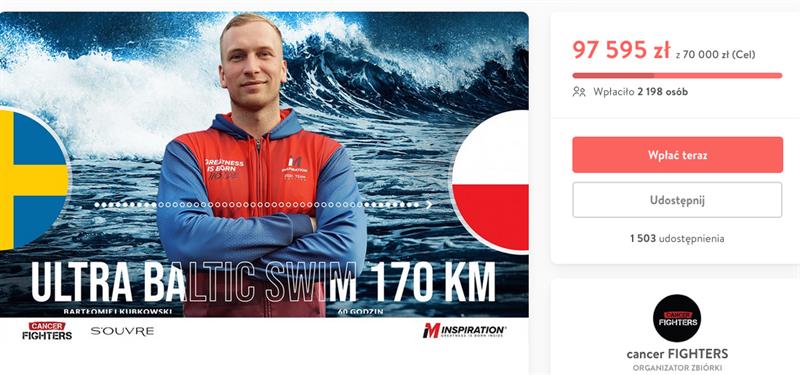 Bartłomiej Kubkowski pochodzi z Giżycka, gdzie mieszkają jego rodzice. Jak przystało na tę mazurską miejscowość, pływanie wyssał z mlekiem matki. Swoją pasję kontynuował we wrocławskiej Szkole Mistrzostwa Sportowego. Nie bez powodu zyskał przydomek „Foka". Jego wyczyn - próbę przepłynięcia 170 km - wszyscy śledzili z zapartym tchem. Nie udało się. Musiał się poddać po 32 godzinach. Nikt jednak nie ma wątpliwości, że dokonał niezwykłego. I powiódł się jego cel - wsparcie dzieci walczących z rakiem! W czwartek (11 bm.) przed południem na portalu pomagam.pl z zaplanowanych 70 tys. zł, na koncie było prawie 97 600 zł!
