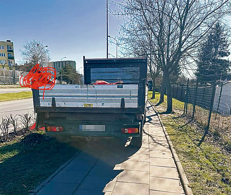 Jeżeli tarasuje chodnik to zagraża bezpieczeństwu pieszych. Powinien być natychmiast odholowany. To kosztuje i przemawia do wyobraźni najróżniejszych arogantów, tępaków i zwykłych cwaniaczków.
