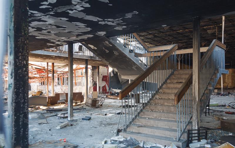 Popularny od lat 70. minionego wieku sklep meblowy Platan jest dziś ruiną i nieodbudowanym pogorzeliskiem po pożarze w sierpniu 2020 roku. Co prawda strona internetowa sklepu wciąż zaprasza do zakupów przy ul. Jagiellońskiej 50/57 w Szczecinie i podaje nawet godziny otwarcia, to jednak kanapę można kupić wyłącznie w popularnym serwisie sprzedażowym. Właściciele chcą postawić nowy sklep, tyle że plany na razie uniemożliwia długotrwałe postępowanie ubezpieczeniowe.