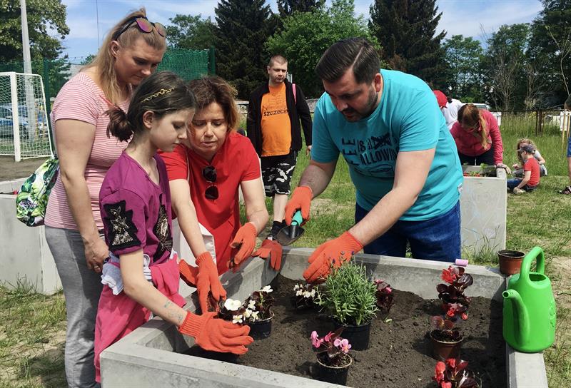 W realizacji tego ambitnego przedsięwzięcia - także finansowo - znacząco pomogła miejscowa Rada Osiedla Drzetowo-Grabowo. Dzięki temu na terenie zaaranżowanym zielenią przy ul. Rugiańskiej 74-76, została otwarta „Bezpieczna przystań". Ze strefą zabaw dla najmłodszych (piaskownica, plac zabaw), rekreacji dla seniorów (ławki, stoliki do gier), ogrodem społecznym oraz strefą sportową (plenerowa siłownia, boisko).