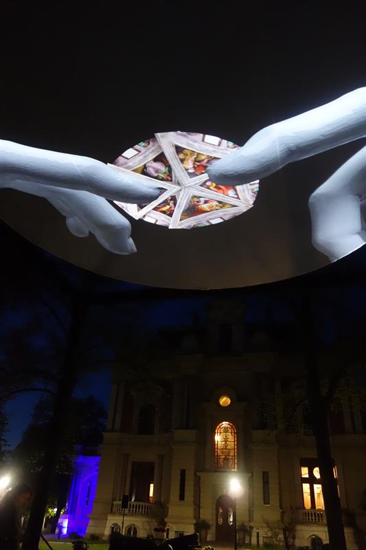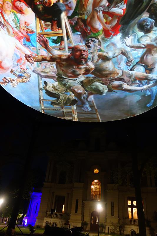 W poniedziałkowy wieczór z nieba nad Willą Lentza zszedł korowód dziesiątek postaci znanych z obrazów takich mistrzów, jak: Michał Anioł, Caravaggio, Rembrandt, Klimt i Malczewski. Całość dopełniły linie, punkty i płaszczyzny z obrazów Kandinsky’ego.