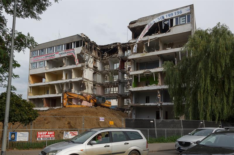 stojąc obok na przystanku tram aż w zębach trzeszczy piach, to takie wyburzanie.