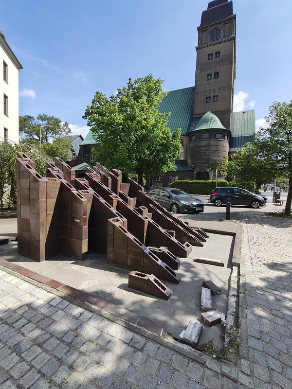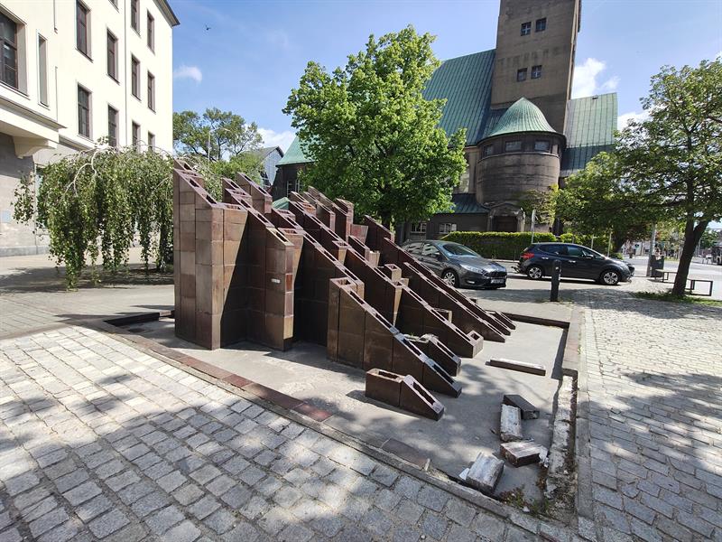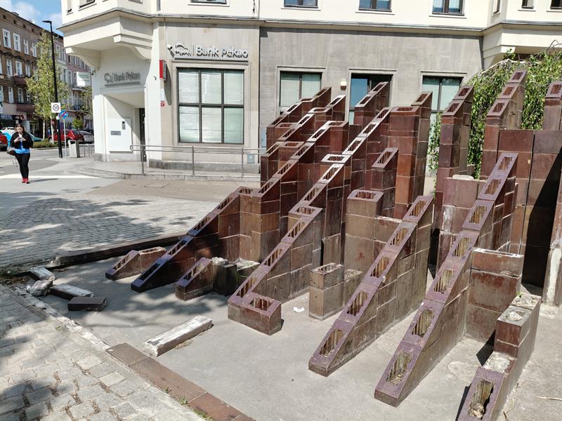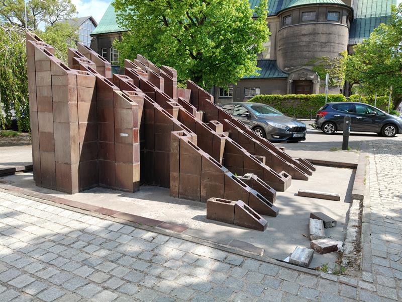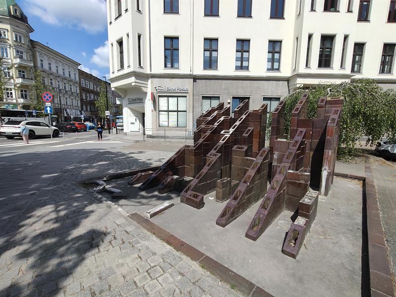 Wykonana z klinkierowych pustaków konstrukcja niszczeje: właśnie odpadły z niej kolejne elementy, obrzeże się sypie, murszeją spoiny. Czas świetności niegdysiejszej rzeźby zraszanej wodą dawno minął. Nawet dokumentacja projektowa wraz z pozwoleniem na budowę, które ją miały przywrócić do życia, straciły walor aktualności.
