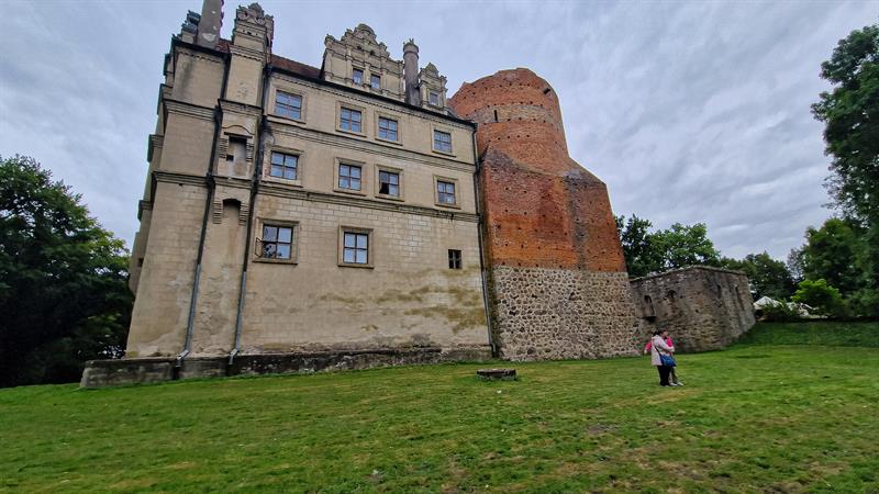 Zachwyca renesansową fasadą, która wyłania się wśród drzew pobliskiego zespołu parkowego. Mijając bramę, docieramy do dalszych części budowli: średniowiecznej baszty, ruin kaplicy i neogotyckiego skrzydła wschodniego. Łącznikiem i bramą docieramy na dziedziniec. Stamtąd można udać się do komnat, lochu czy sali tortur. Ta ostatnia budzi największe zainteresowanie turystów - wystylizowane na dawnych skazańców manekiny umieszczone są w narzędziach tortur lub stalowych klatkach. Nad wszystkim góruje ogromna postać kata. Atmosfera jest gotycka i tajemnicza, panuje tam półmrok. Dodatkową atrakcją są lochy: niewielki, bardzo niski i wąski korytarz prowadzi do przepaści (miejsce zabezpieczone jest barierką), a nad wszystkim unosi się dziwna, czarna postać przypominająca zjawę.
