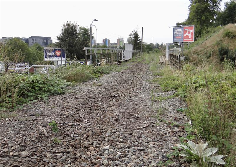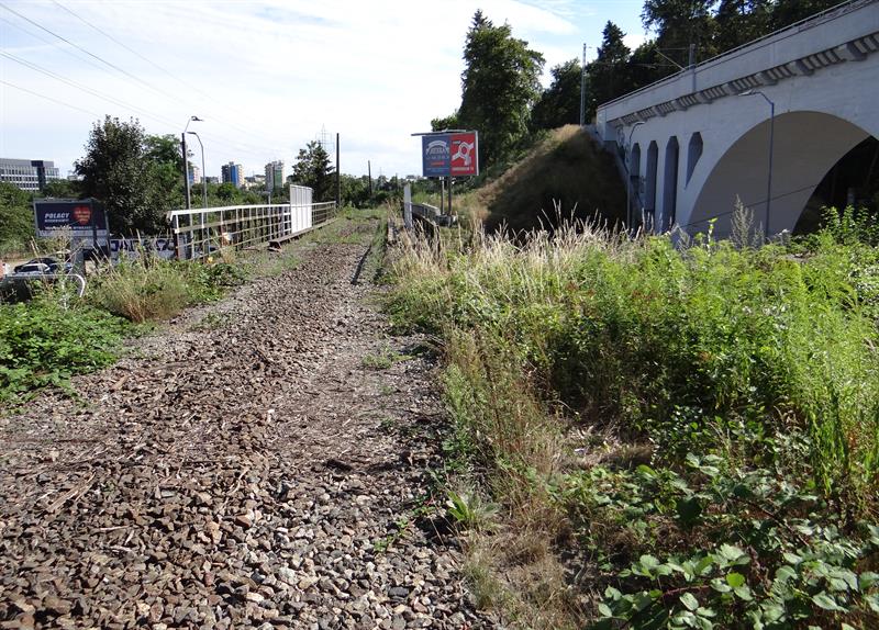 Boczny tor, poniżej wiaduktu głównej magistrali kolejowej na odcinku między Pomorzanami i Turzynem, nad ul. Ku Słońcu. To nim ma biec trasa przyszłej SKM i przy nim ma być zlokalizowany jeden z jej przystanków. Fot. Mirosław WINCONEK