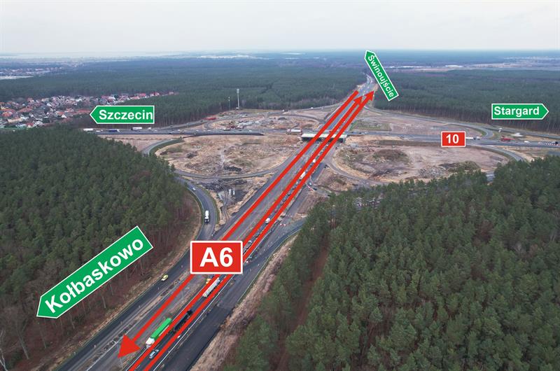 - Zmieniliśmy organizację ruchu na przebudowywanym węźle drogowym Szczecin Kijewo - poinformował Mateusz Grzeszczuk, główny specjalista ds. komunikacji społecznej w GDDKiA. - Zamiast jednej jezdni autostrady A6 po jednym pasie ruchu w każdym kierunku, kierowcy mają do dyspozycji dwie jezdnie, przy czym ruch w kierunku Świnoujścia i Gdańska odbywa się dwoma pasami ruchu, natomiast w kierunku Kołbaskowa jednym pasem.