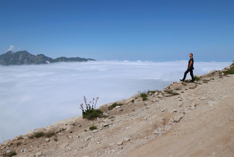 Brzeg kamienistej drogi kończy się stromo. Powyżej linii chmur. Ponad nimi tylko grzbiety gór i niebo. Dorota - szczupła dziewczyna w traperskich butach - stoi na krawędzi. Chwila zatrzymana w kadrze. Przez Roberta. Z miłością.