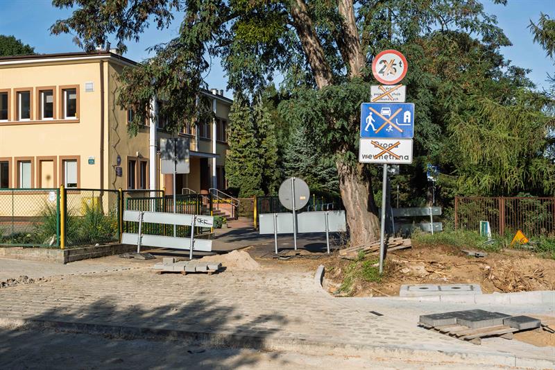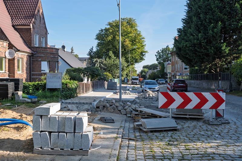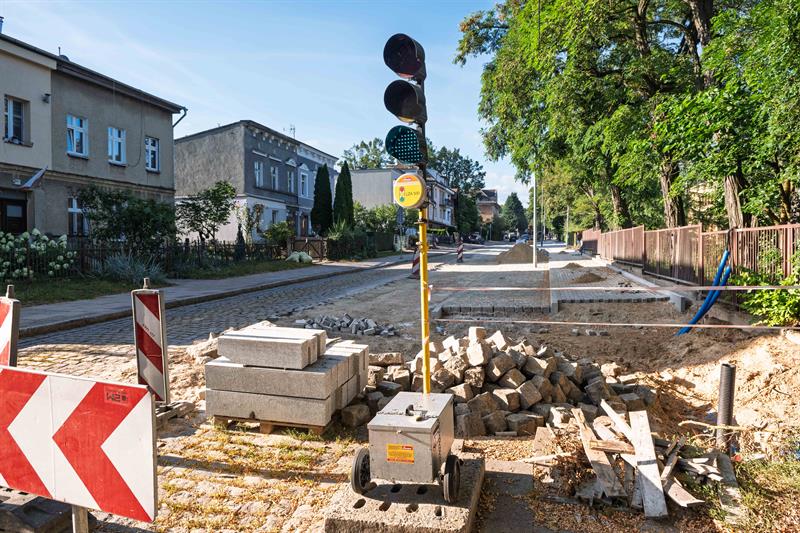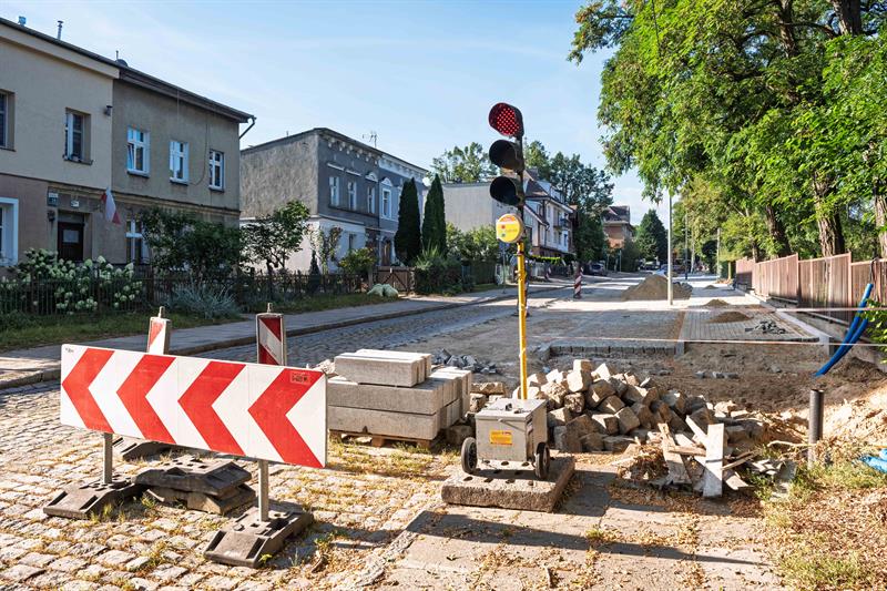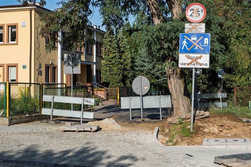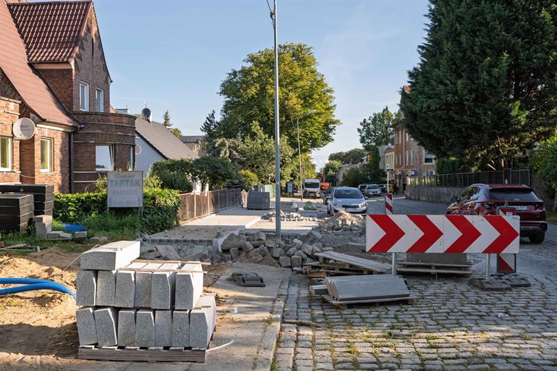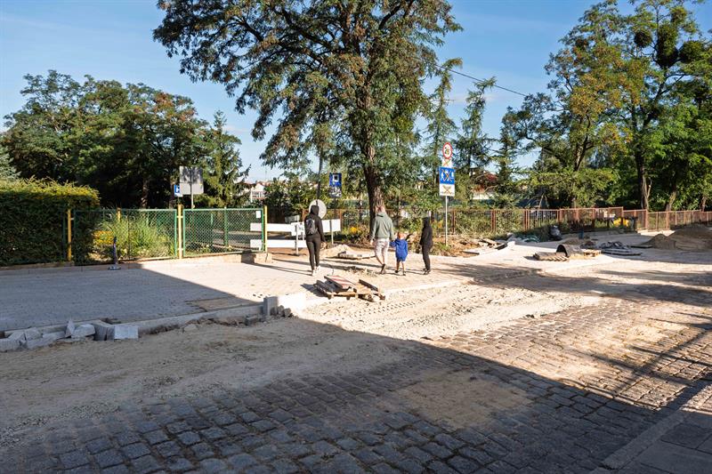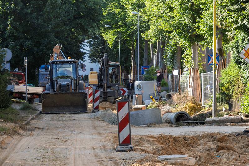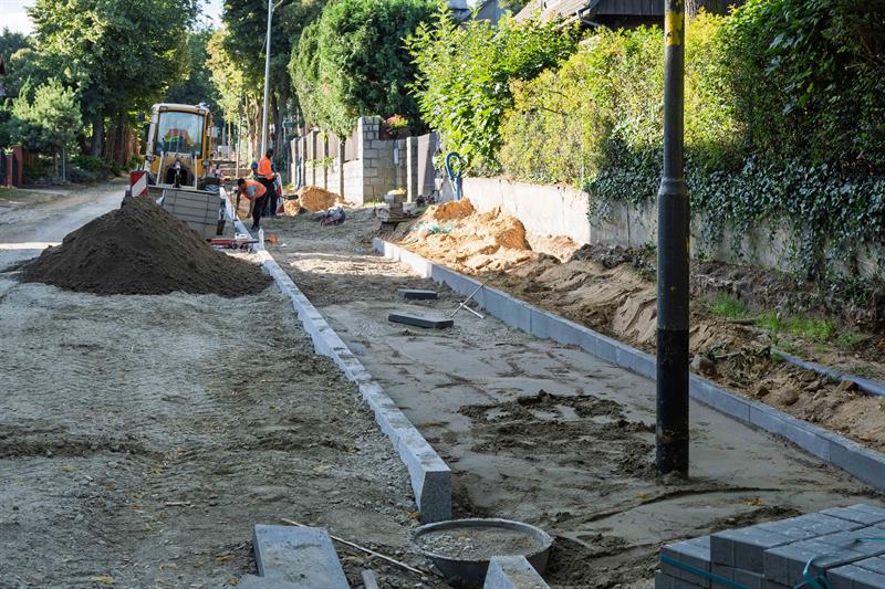 Na ul. Krzemiennej trwa obecnie formowanie przyszłej jezdni i chodników. W niektórych miejscach przygotowane zostały już podbudowy, na kolejnych odcinkach montowane są krawężniki i obrzeża, a wzdłuż ulicy powstają zatoki postojowe. Na ul. Smoczej prowadzone są natomiast roboty instalacyjne związane z budową kanalizacji deszczowej o dużych przekrojach. Równolegle zabezpieczane są istniejące sieci podziemne, tak aby w dalszych etapach możliwe było bezpieczne prowadzenie robót drogowych.