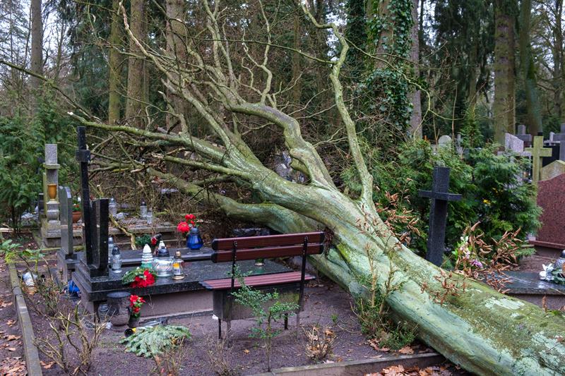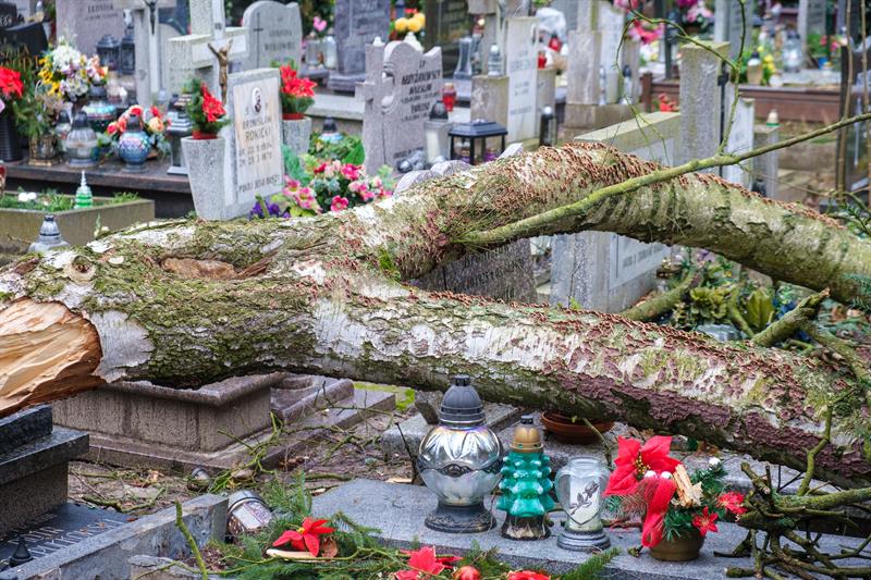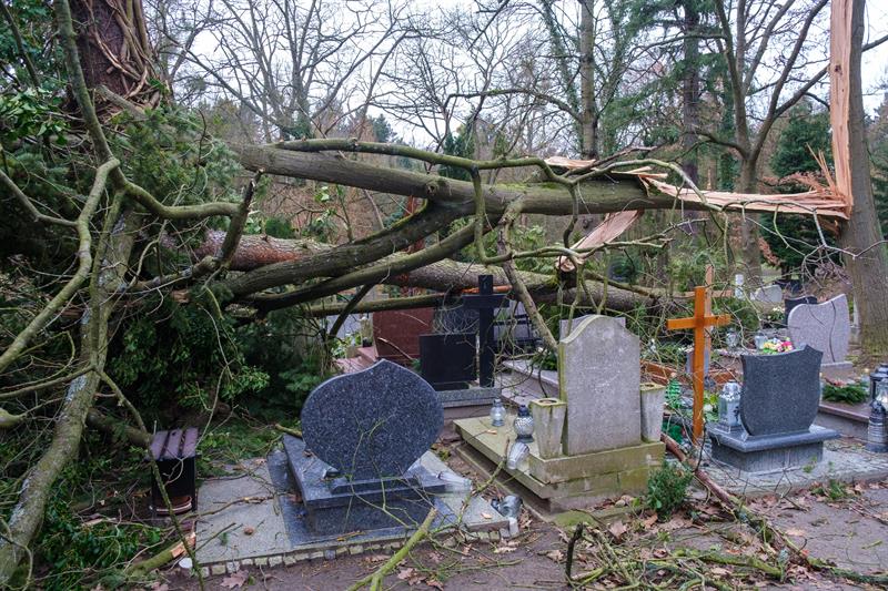 Zieleń szczecińskiego Cmentarza Centralnego została w tym roku wyjątkowo tragicznie doświadczona. Najpierw dwie potężne wichury powaliły blisko 280 drzew: pierwszy orkan pochłonął 150 okazów starodrzewia, drugi zabrał kolejnych 127. To był ogromny cios zarówno w wartość przyrodniczą, jak i historyczną zabytkowego „parku umarłych". Wkrótce jednak się okazało, że ze względu na zły stan zdrowotny konieczne było usunięcie dodatkowych 112 drzew.