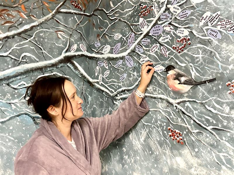 - Każda mama, po narodzinach dziecka, otrzymuje listek z imieniem i datą narodzin swojej pociechy i może wspólnie z osobą towarzyszącą jej przy porodzie umieścić ten listek na gałęzi - wyjaśnia Beata Szmidt, położna z bloku porodowego szpitala „Zdroje" - Natomiast jeżeli dziecko rodzi się przez cesarskie cięcie, to wówczas tata oczekujący na bloku porodowym na mamę umieszcza ten listek na drzewie.
