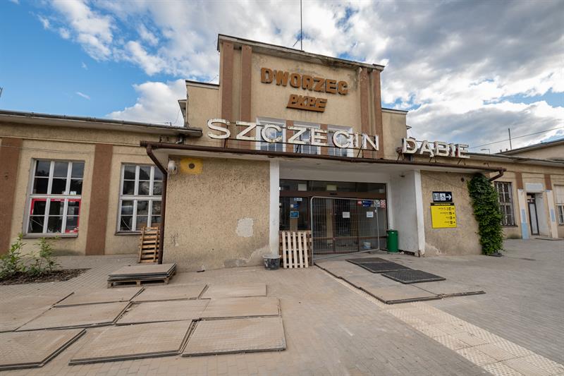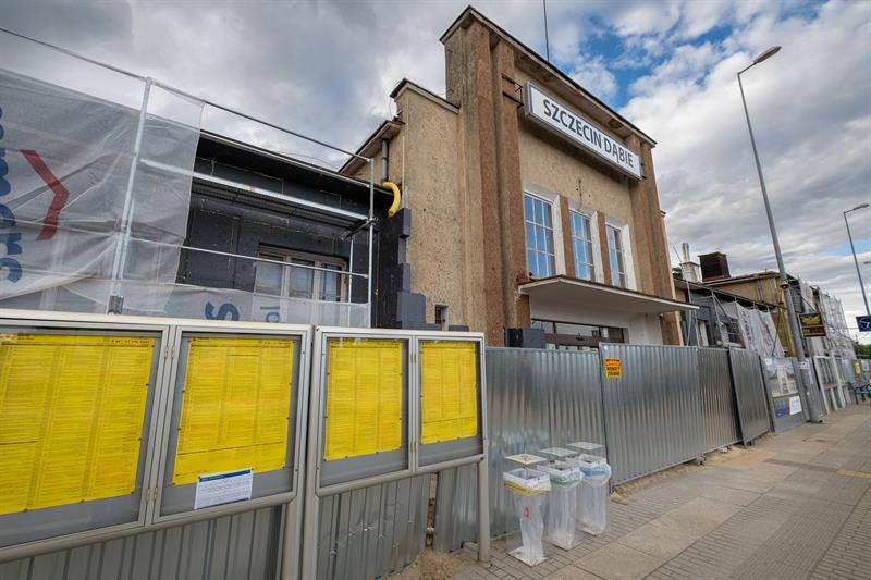 Modernizacja dworca Szczecin Dąbie wchodzi w kolejną fazę. Co prawda cała inwestycja zostanie ukończona dopiero w grudniu 2025 roku, ale roboty rozpoczęły się na dobre. Sala obsługi podróżnych już jest przeniesiona do pomieszczeń tymczasowych w kontenerach, prace rozpoczęły się także wewnątrz budynku.