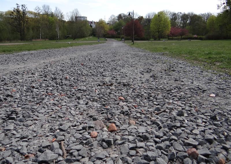 Teraz jest pełen zapadlisk i wybojów: deszcze wymywają kolejne warstwy skrywanego pod żwirem ceglanego tłucznia, popiołów i żużla, podmywając pokrywy podziemnych instalacji, czyniąc je niebezpiecznymi dla pieszych oraz rowerzystów.