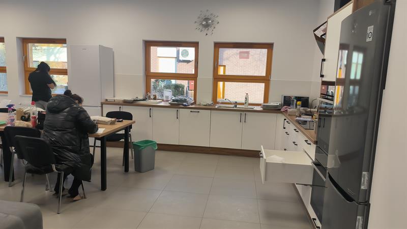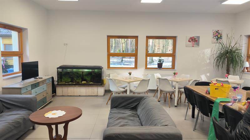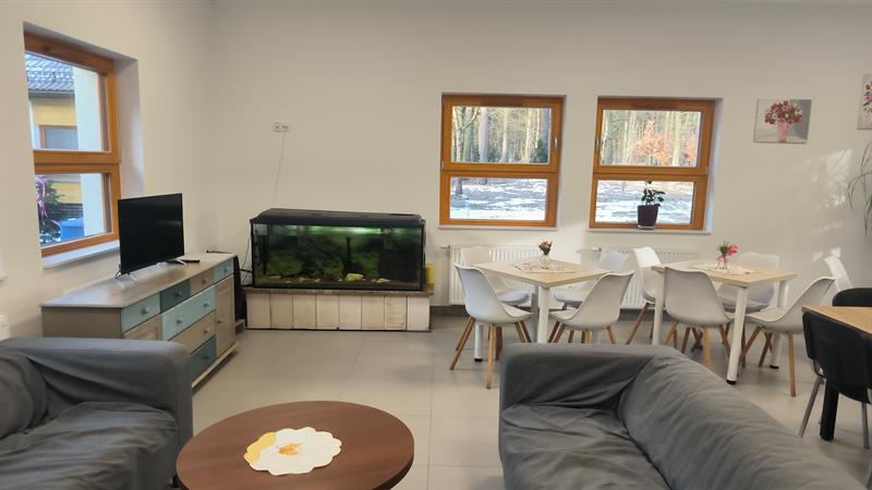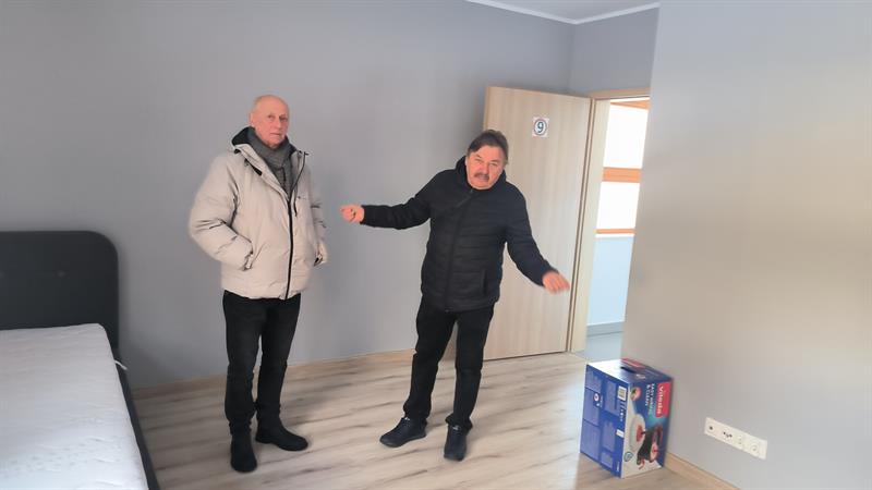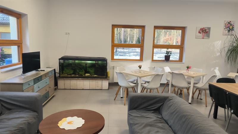 W nowych mieszkaniach powoli urządzają się pierwsi lokatorzy. Zamieszkają w nich w marcu, po dopełnieniu wszelkich formalności. To 9 osób o różnym poziomie samodzielności. Każda do wyłącznej dyspozycji będzie miała pokój z aneksem kuchennym oraz łazienką (w nich przyciski do przywoływania pomocy, gdyby była potrzebna). Do tego są części wspólne: duża kuchnia z jadalnią i salonem, spiżarnia, pralnia i inne pomieszczenia pomocnicze, niezbędne do prowadzenia tak dużego domu.