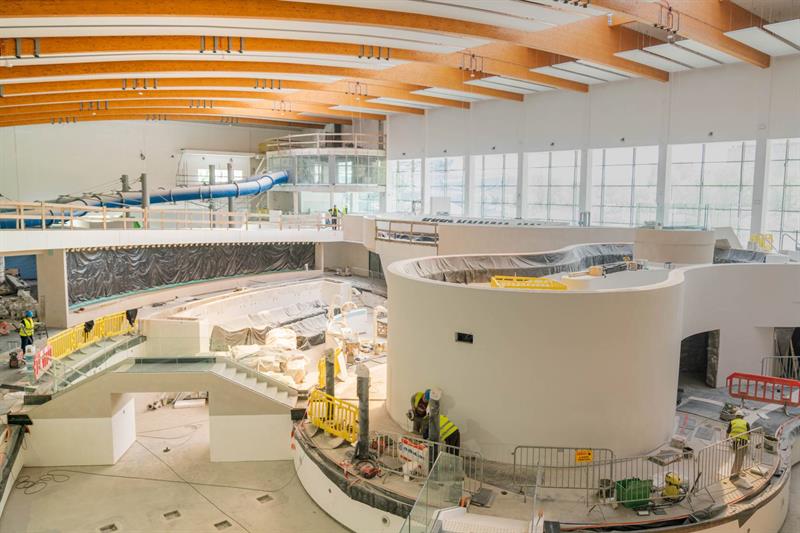 To rozległy kompleks o kilkunastu różnych funkcjach. Baseny, sauny, strefy rozrywkowe i sportowe oraz Centrum Edukacyjne oferować mają wiele atrakcji, zabawy, jak i edukacji. We wszystkich przestrzeniach trwa aktualnie najbardziej czasochłonny i skomplikowany etap inwestycji - roboty wykończeniowe.