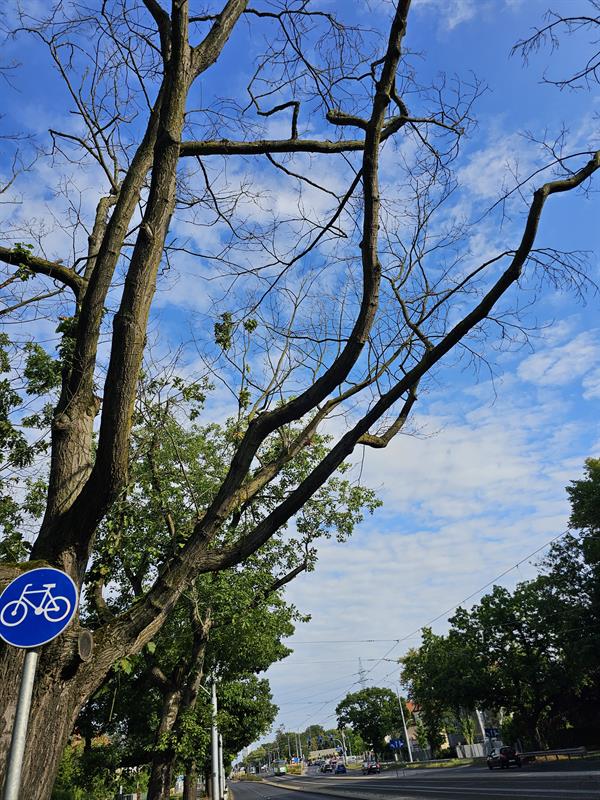 Zamiera kolejne z wiekowych drzew historycznej alei dębów czerwonych, jaka niegdyś zdobiła al. Wojska Polskiego na odcinku łączącym Pogodno z centrum Szczecina. W ten sposób natura „wystawia rachunek" za błędy projektowe i naruszenia w obrębie brył korzeniowych, jakie zostały popełnione podczas jednej z największych i najważniejszych inwestycji drogowych ostatnich lat w naszym mieście. Mowa o zakończonej przed kilkoma laty budowie Węzła Łękno, mającego pełnić funkcję centrum przesiadkowego dla przyszłej Szczecińskiej Kolei Metropolitalnej.