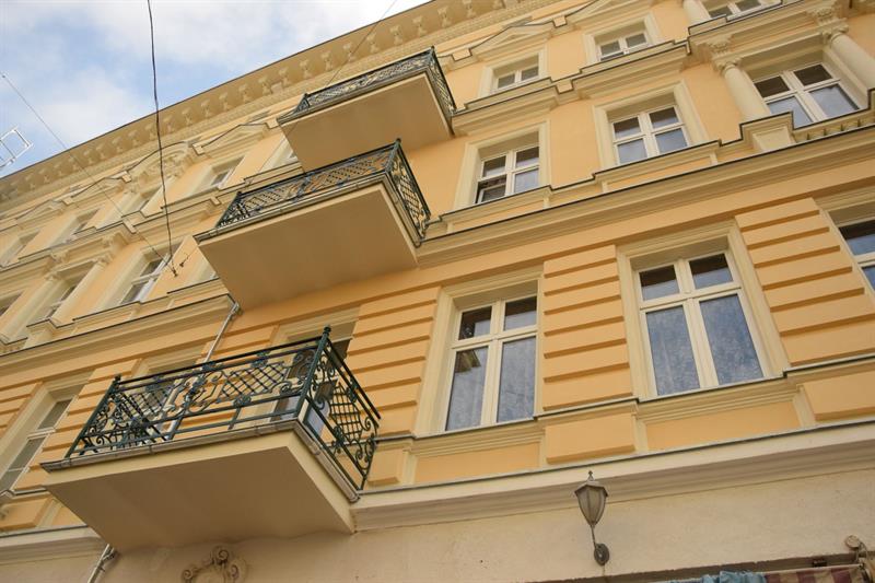Kolorystyka elewacji została uzgodniona z miejskim konserwatorem zabytków na podstawie wcześniej wykonanych odkrywek malarskich. Ściana frontowa, tło i spody balkonów zyskały kolor piaskowo-ugrowy, natomiast detale i ościeżnice okien kolor chłodny beż.