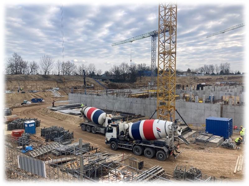 PUM dodaje: „Kontynuujemy prace związane z układaniem instalacji dolnego źródła ciepła. Jest to kluczowy element zapewniający efektywną i ekologiczną eksploatację budynku. Pracujemy nad zbrojeniem ław fundamentowych, które stanowią solidną podstawę dla całej konstrukcji. Proces betonowania słupów i ścian garażu na kondygnacji -3 znajduje się w trakcie realizacji, co wpisuje
