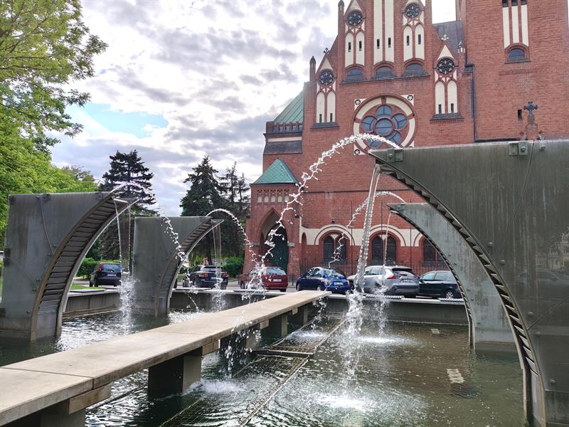 Po latach przerwy - wyłączenia z użytkowania - z jej betonowych pylonów znów spływa woda. Mowa o bodaj najbardziej pechowej ze szczecińskich przemian basenów przeciwpożarowych w fontanny. O wodnych pióropuszach z pl. Zwycięstwa, tryskających w bliskości kościoła garnizonowego.