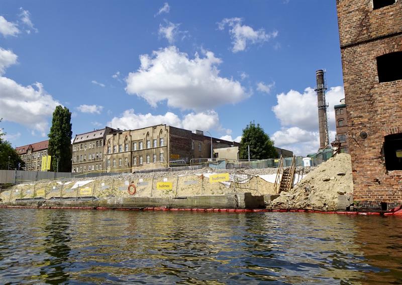 Z krajobrazu tzw. szczecińskiej Wenecji zniknęły stare zrujnowane obiekty gospodarcze wchodzące w skład pofabrycznej nieruchomości położonej bezpośrednio nad Odrą przy ul. Kolumba 79-80. To inwestycja Wód Polskich w Szczecinie. Główny obiekt ma być całkowicie przebudowany, dojdzie w nim jedna kondygnacja. Wykonawca, firma Budimex, czeka obecnie na uprawomocnienie pozwolenia na budowę, by móc przystąpić do zasadniczych prac. Zgodnie z umową, mają się one zakończyć w grudniu 2025 roku.
