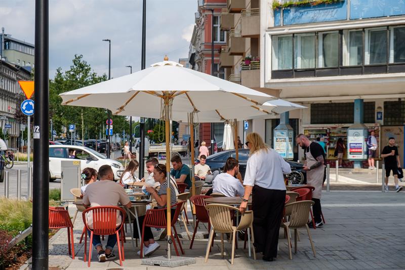 W alei fontann też duży ruch, każdy z punktów gastronomicznych, czy to ze słodkościami, czy jadłem bardziej wytrawnym, prawie nie ma wolnych miejsc. W „Paprykarzu", „Emilio", „Public Fontanny" czy „Bananowej Szklarni" pełne gości są nie tylko