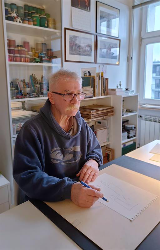 Pan Maciej jest absolwentem Wydziału Sztuk Pięknych Uniwersytetu im. Mikołaja Kopernika w Toruniu, dyplom w 1974 r., w pracowni prof. Mieczysława Wiśniewskiego, jest grafikiem, autorem rysunków, scenografii, ilustracji i typografii. Uprawiał także grafikę reklamową, tworzył malowidła naścienne i architekturę wnętrz, ale w ostatnich latach przede wszystkim skupił się na rysunku i ilustracji książkowej.
