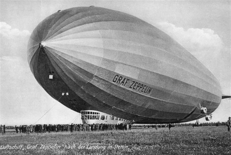 Po raz pierwszy sterowiec „Graf Zeppelin", oznaczony numerem LZ-127, pojawił się nad szczecińskim niebem w ramach lotu dookoła świata i było to 15 sierpnia 1929 roku. Lot zakończył się szczęśliwie 4 września 1929 roku.