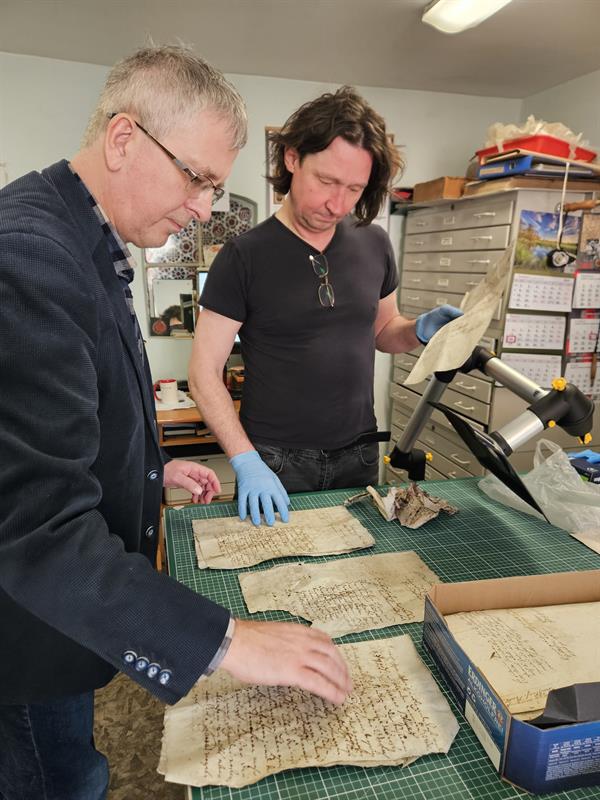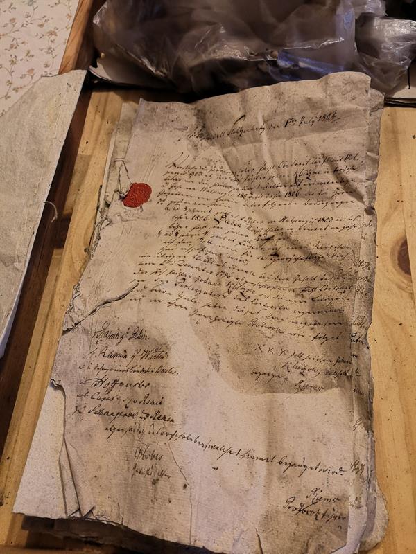- W sierpniu ubiegłego roku mieszkańcy Stolca powiadomili mnie, że w jednym ze starych domów we wsi została odnaleziona „puszka z dokumentami". Bardzo mnie ta informacja zainteresowała, pojechałam więc na miejsce. Okazało się, że 10 lat temu właścicielka połowy nieruchomości położonej tuż przy pałacu, pani Lucja Staszak, zatrudniła ekipę fachowców, którzy mieli wykonać remont dachu. Po zakończeniu prac kobieta znalazła w ogródku otwartą i porzuconą w krzakach metalową „kapsułę", a obok zmięte kartki papieru. Pozbierała wszystko, ale