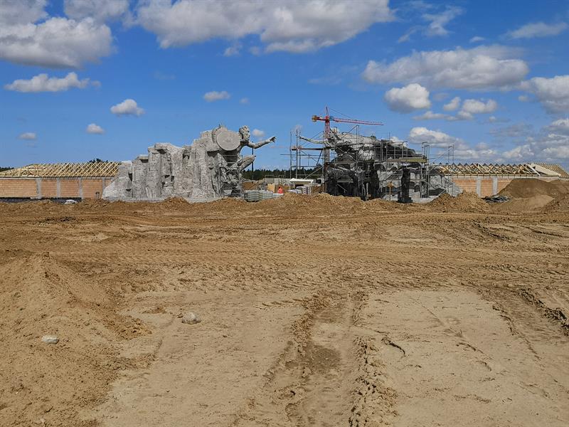 Na razie, przejeżdżając koło placu budowy, nie widzimy z ulicy robót (głównie wylewanie fundamentów i prace zbrojeniowe), jakie prowadzone są za widocznymi na zdjęciu rzeźbami Wikinga i Syrenki, które sprowadzono z Portugalii i na miejscu je zmontowano. Jak się dowiedzieliśmy, większość atrakcji będzie pochodziła spoza granic naszego kraju.