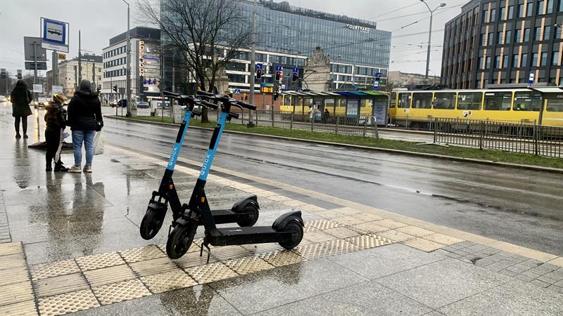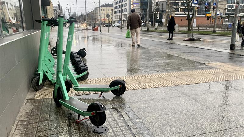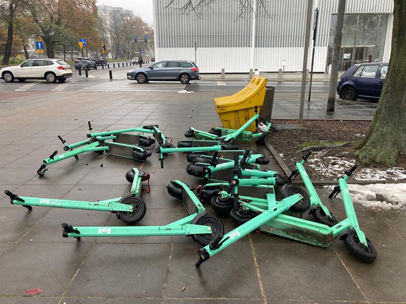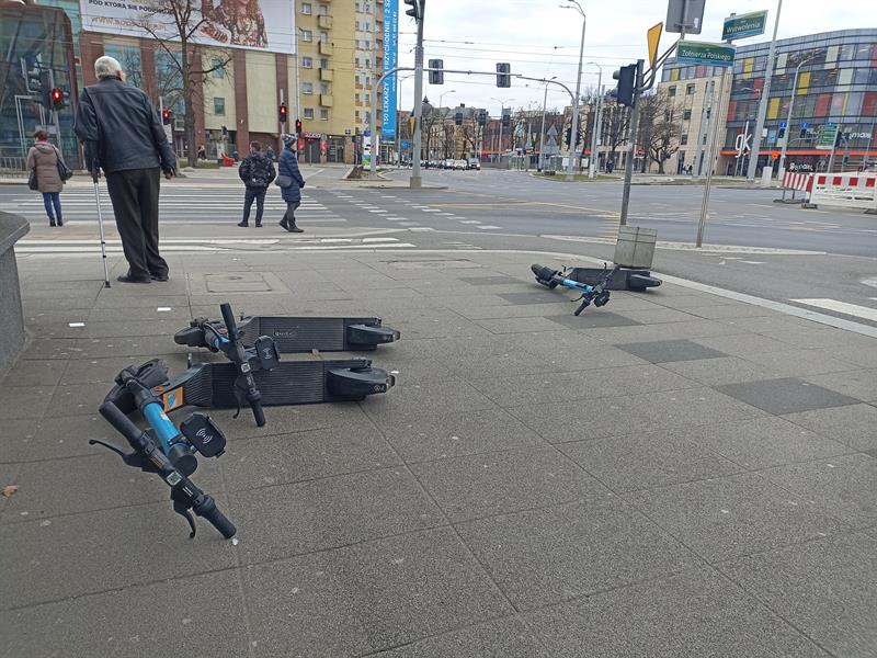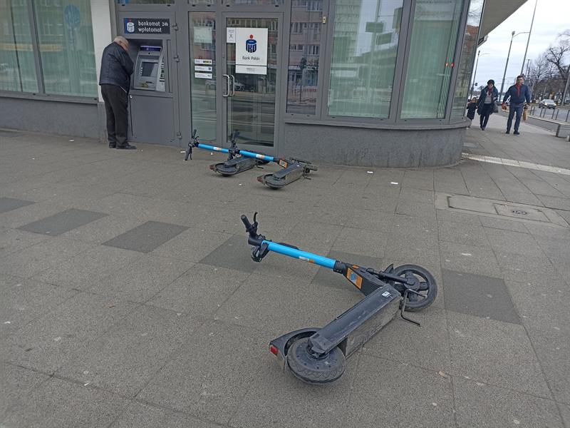Co jednak - jak widać nawet teraz, zimą - nie rozwiązało problemu. Piesi wciąż się potykają o leżące hulajnogi