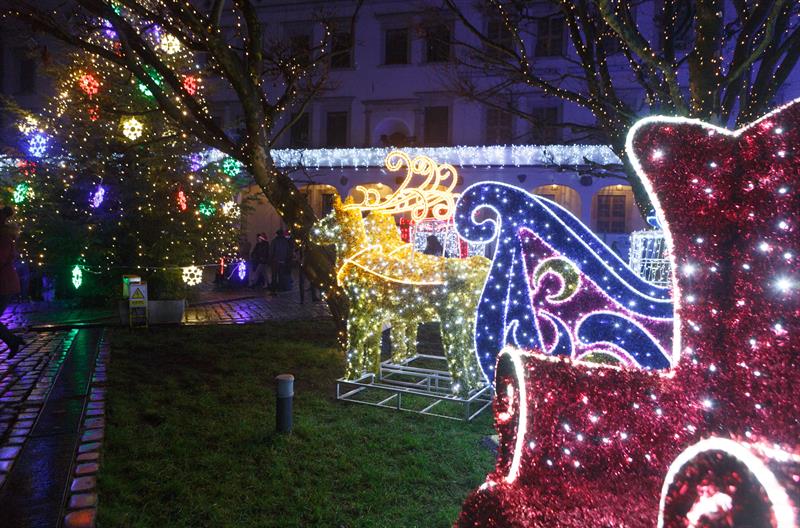 Na elewacjach budowli mienią się też oczywiście płatki śniegu, a na zamkowej wieży dzwonów dostrzec będzie można przemykającego św. Mikołaja w saniach z zaprzęgiem reniferów, tyle tylko że tym razem w ściśle wyznaczonych porach. To specjalne oświetlenie zarówno w czasie nadchodzącego weekendowego jarmarku, jak i w całym okresie świątecznym będzie wyłączane o godzinie 22 (w dni powszednie), w weekendy - o godzinie 23.