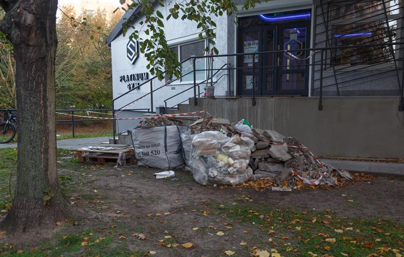Dwa worki na gruz zostały zapełnione. Inwestor prace kontynuował, więc zużytych materiałów budowlanych z każdym dniem przybywało. „Rozlały" się więc na kolejne worki i wprost na trawnik. Problem w tym, że wszystkie te ciężkie odpady są składowane pod koronami wysokich lip, czyli strefie ochrony drzew. Choć nie powinny.