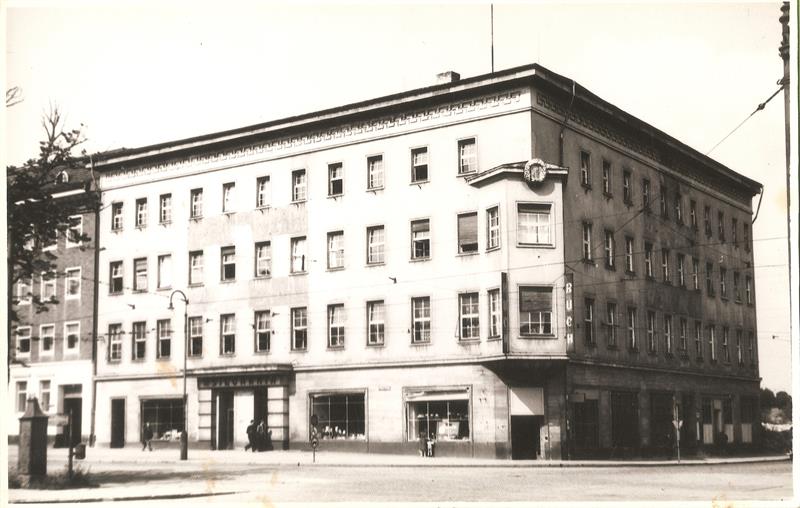 Obecny budynek przy placu Hołdu Pruskiego powstał pod koniec XIX wieku jako piękna secesyjna kamienica. Posiadał sporo zdobień i cechowała go charakterystyczna dla secesyjnych gmachów asymetria.