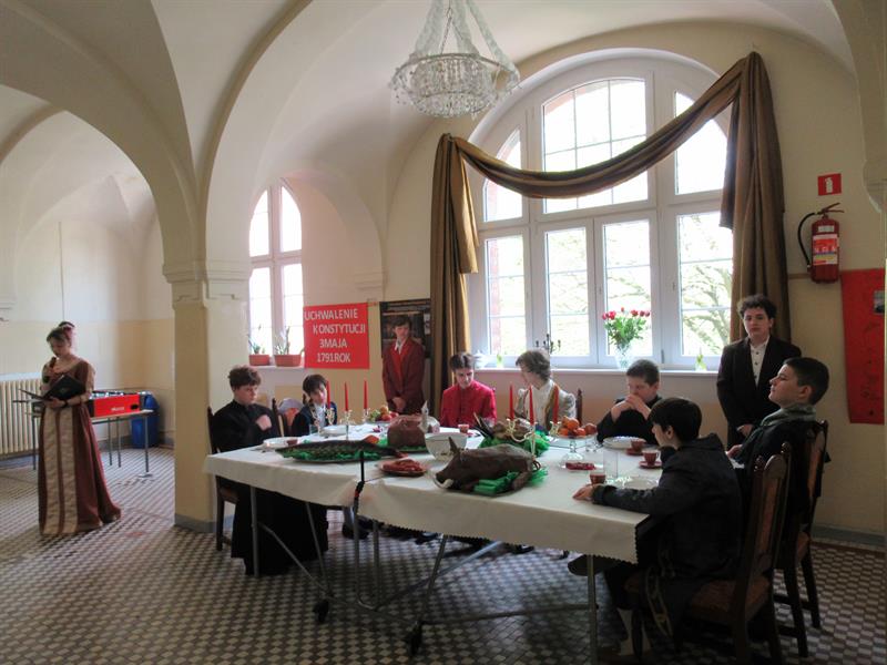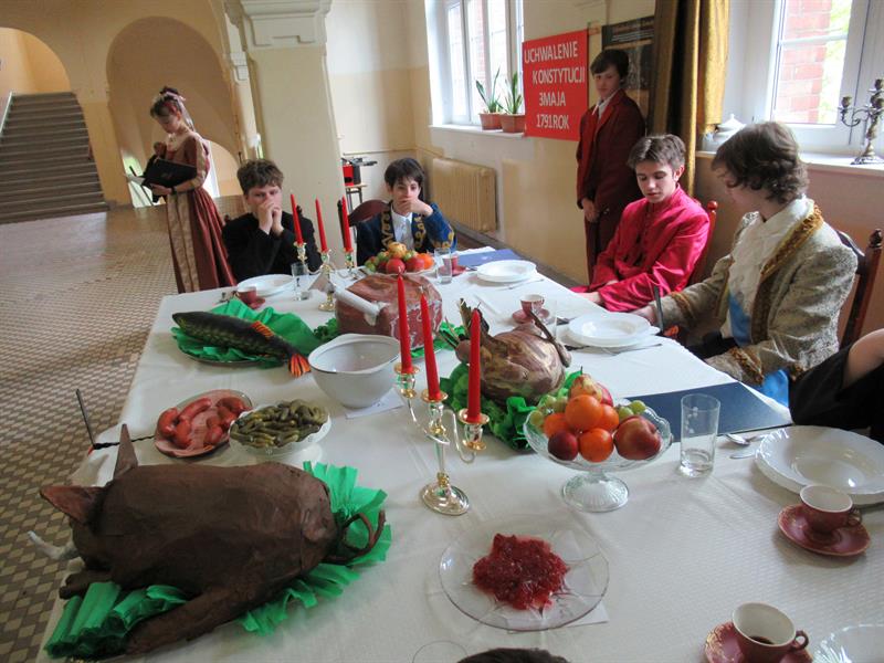 Rekonstrukcję historyczną XVIII-wiecznego obiadu czwartkowego u króla Stanisława Augusta Poniatowskiego zorganizowali uczniowie i nauczyciele Szkoły Podstawowej nr 41 z Oddziałami Integracyjnymi w Szczecinie. W taki sposób uczcili oni rocznicę uchwalenia Konstytucji 3 maja.
