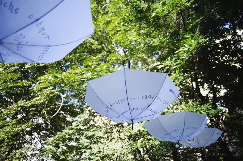 W instalacji wykorzystano kilkanaście wybranych utworów literackich ułożonych w cykle: myśl, historia i varia. Utwory naniesiono na znajdujące się na podwórku elementy takie jak: szarfa, parasol, drabina czy stół z rozstawionymi talerzami.