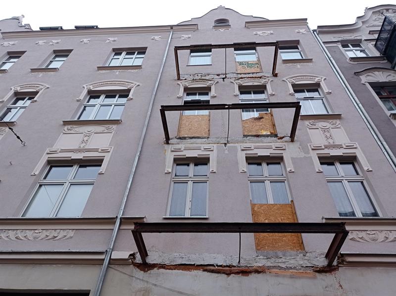 Pierwszy wykonawca plac budowy porzucił. Drugi najpierw pomalował fasadę na zły kolor, a potem zakończył prace bez odtworzenia balkonów. To wówczas - ponad rok temu - na zabezpieczonych paździerzowymi płytami drzwiach balkonowych pojawił się napis: „TAK TU ZARZĄDZA STBS". Przyciągając uwagę do odkrytych stalowych konstrukcji zdemontowanych balkonów, które niczym nie zabezpieczone miesiącami trwały nad wąskim chodnikiem. I ściągając krytykę na Szczecińskie Towarzystwo