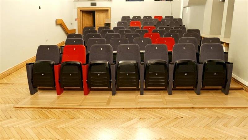 Fotele kina „Zamek" wymienione zostały po ponad 20 latach. Nowe, w kolorze grafitowym, wprowadzają bardzo filmową atmosferę. Odrobiny różnorodności dodają rozmieszczone punktowo fotele w odcieniu czerwieni.