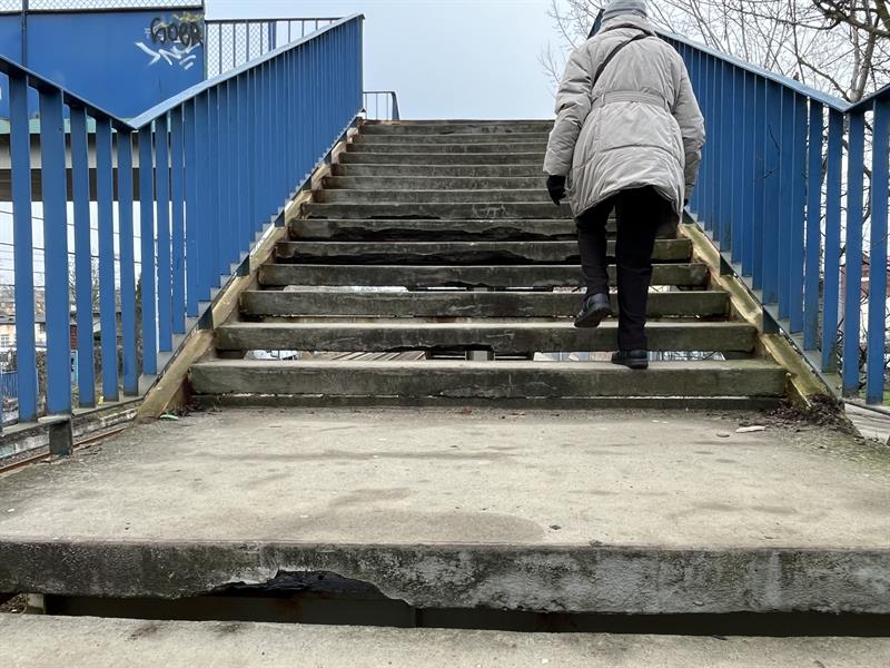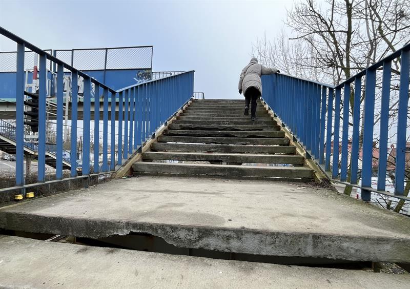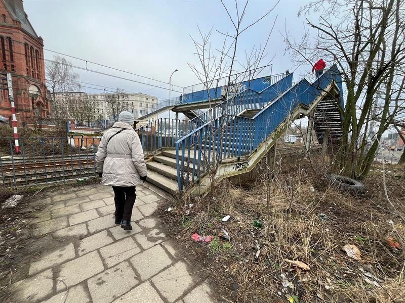Każdego dnia przez tę kładkę przechodzą tysiące osób. Gros z nich to pacjenci Uniwersyteckiego Szpitala Klinicznego nr 2 PUM oraz jego przychodni specjalistycznych: osoby chore i niedowidzące, głównie starsze, mające problemy z poruszaniem. Mimo to konstrukcja nie jest przystosowana dla osób niepełnosprawnych. Przeciwnie, stanowi dla nich barierę architektoniczną trudną, a dla osób poruszających się na wózku - niemożliwą do pokonania. Na schodach nawet nie zamontowano szyn, które ułatwiłyby wprowadzanie wózków dziecięcych i rowerów.