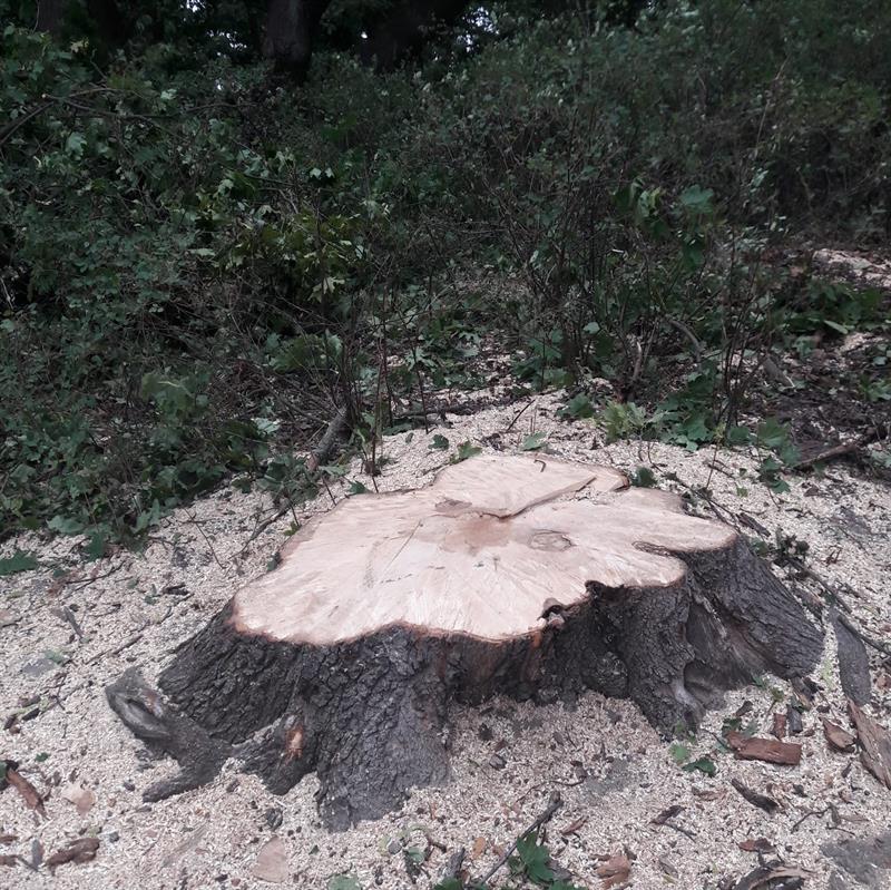 Karpa zdrowego pnia - to jedyny ślad jaki przetrwał po wiekowym klonie. Bo drzewa już nie ma. Za to tuż obok parkowej ścieżki wciąż straszy niemal całkowicie uschnięty dąb o potężnych rozłożystych konarach. Czyżby na skraju parku Kasprowicza w Szczecinie pilarze pomylili wskazane do wycinki drzewa?