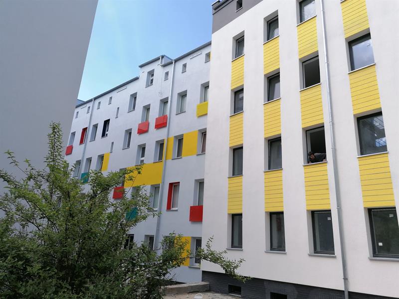 - Na parterze budynku przewidziano świetlicę środowiskową, w której będzie możliwość integracji mieszkańców oficyn i kamienic frontowych. W budynku zaprojektowano windę