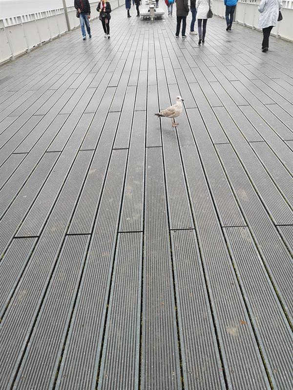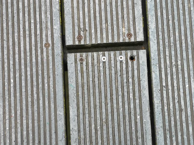 Deski z relamutu, jakie zamontowano w 2014 roku na kołobrzeskim molo zostały niezbyt dobrze przykręcone do poziomych podpór, jakie są pod spodem mola. Wykonane są także z tego samego materiału, ale metalowe wkręty z nich wypadają. Widać to gołym