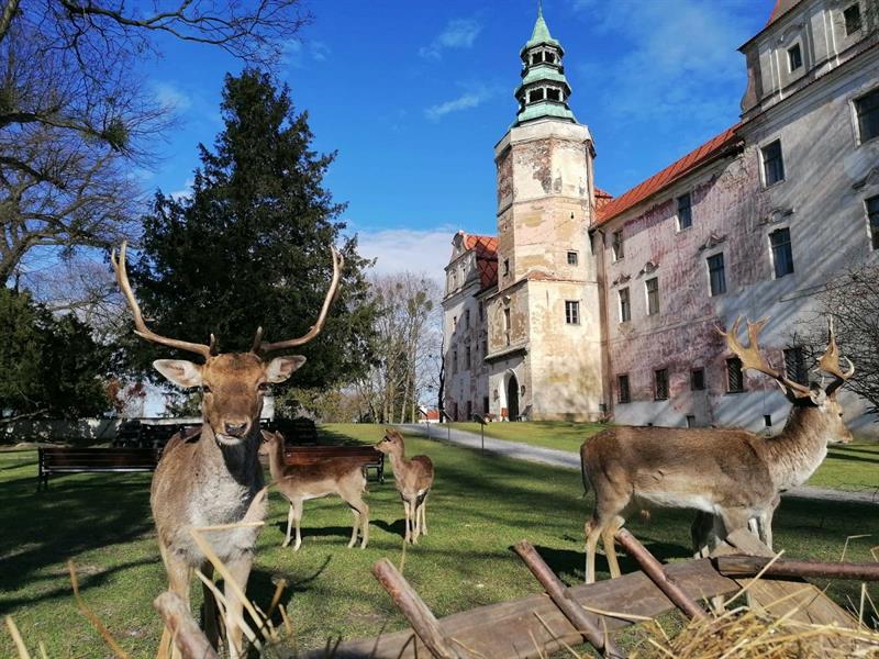 Potem właścicielami zamku były niemieckie rody arystokratyczne: Hohenzollern, Logau, Pückler, Promnitz i Praschma. W XVI i XVII w. został przebudowany na renesansową czteroskrzydłową rezydencję z prostokątnym dziedzińcem otoczonym arkadami, a w kolejnym stuleciu odnowiony w stylu barokowym. Nad dawną fosą przerzucono też wtedy kamienny most ozdobiony rzeźbami przedstawiającymi św. Floriana, św. Wendelina, św. Antoniego i św. Nepomucena. W XIX w. ze względów ekonomicznych (koszty ogrzewania)