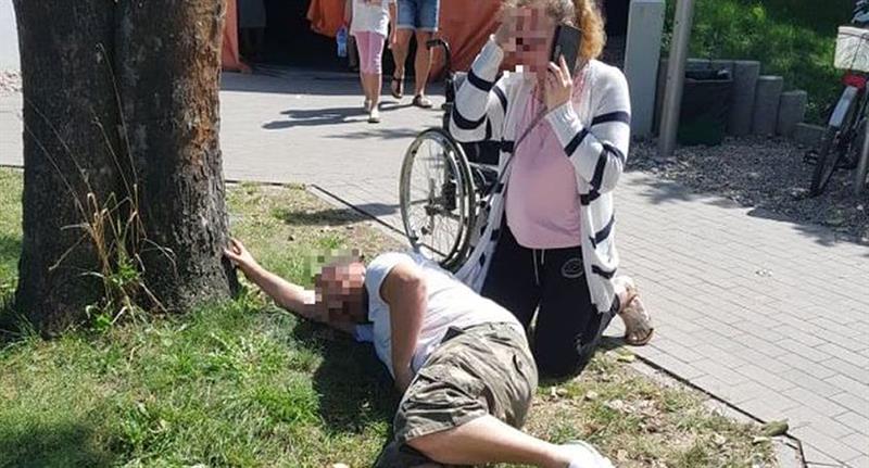 Cierpiącego Włocha trzeba było wywieźć ze szpitala, aby przetransportowało go tam z powrotem wezwane na miejsce pogotowie ratunkowe. Fot. świadek zajścia