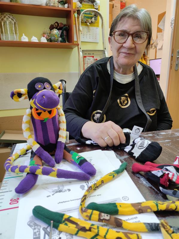 Seniorki z DPS Domu Kombatanta i Pioniera Ziemi Szczecińskiej przy ul. Romera uszyły kolorowe maskotki - małpki dla dzieci. Przytulanki trafią do karetek pogotowia i na szpitalne SOR-y, by pomóc najmłodszym w stresujących chwilach.