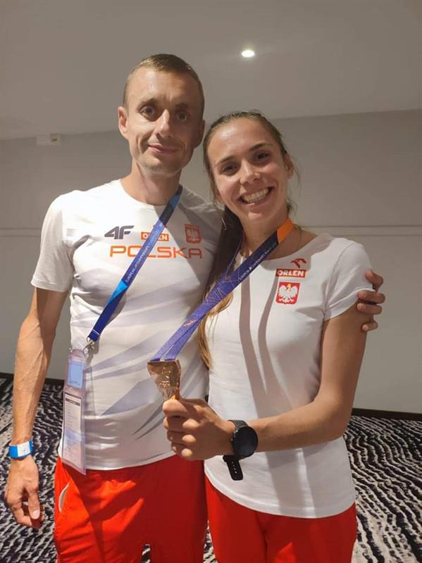 Monika Jackiewicz ze swoim trenerem Arturem Olejarzem Fot. Facebook