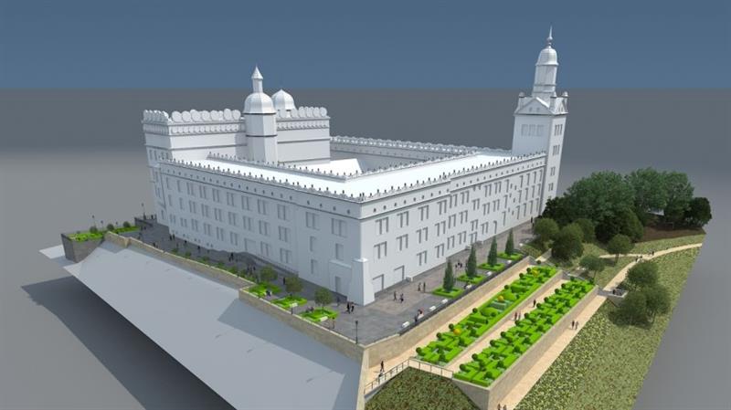 Mrzonka neorenesansowych tarasów i ogrodów na przyzamkowej skarpie